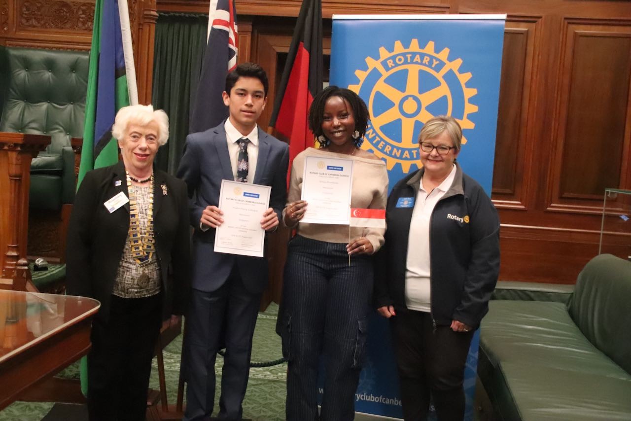 This is MUNA, the Model United Nations Assembly, which is facilitated by Rotary Clubs in Canberra and around Australia. This year the Rotary Club of Bega supported two students, Grace and Andre from Lumen Christie College in Pambula, to travel to Canberra to represent Singapore in a very realistic simulated UN Assembly.