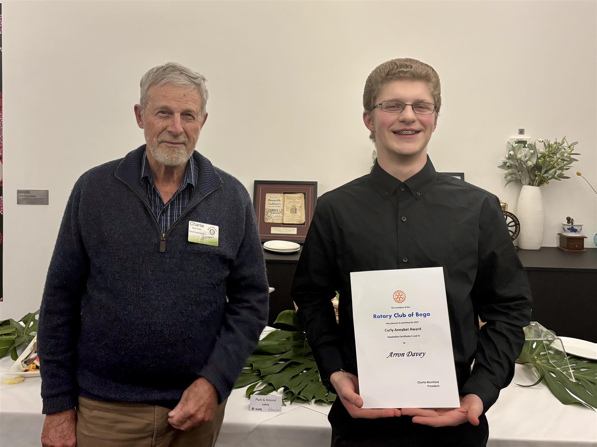 Arron Davey received the Curly Annabel Award for Hospitality Certificate III while Robert Yelvington received the Herb Parbery Award for Commercial Cookery Certificate III - congratulations to both Arron and Robert.